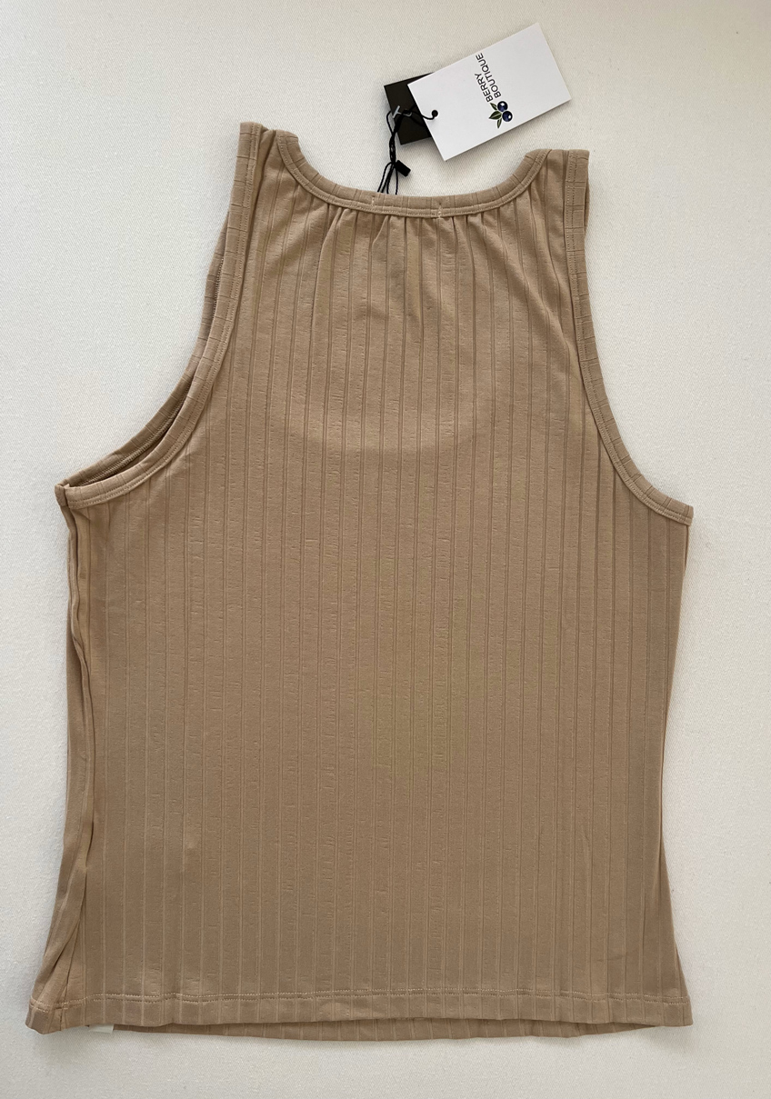 Esta blusa moderna e versátil é a peça perfeita para compor diversos looks com elegância e conforto. Com alças largas e decote fechado, ela valoriza a silhueta sem perder o conforto. A malha canelada adiciona um toque de textura e sofisticação, enquanto a modelagem ajustada ao corpo garante um visual impecável.