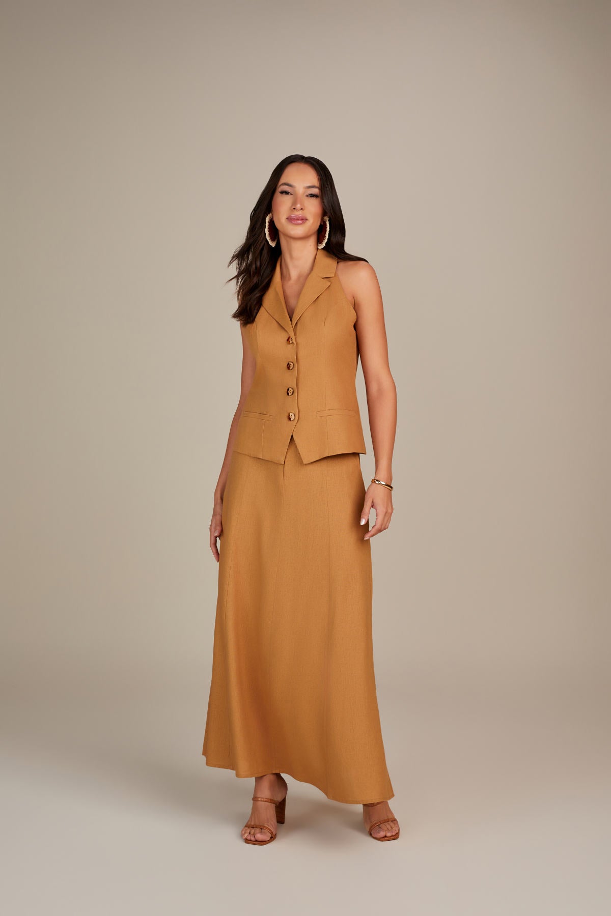 Com a Saia Longa Evase de Linho, você estará pronta para brilhar em qualquer ocasião com uma peça que une o melhor do estilo e conforto!